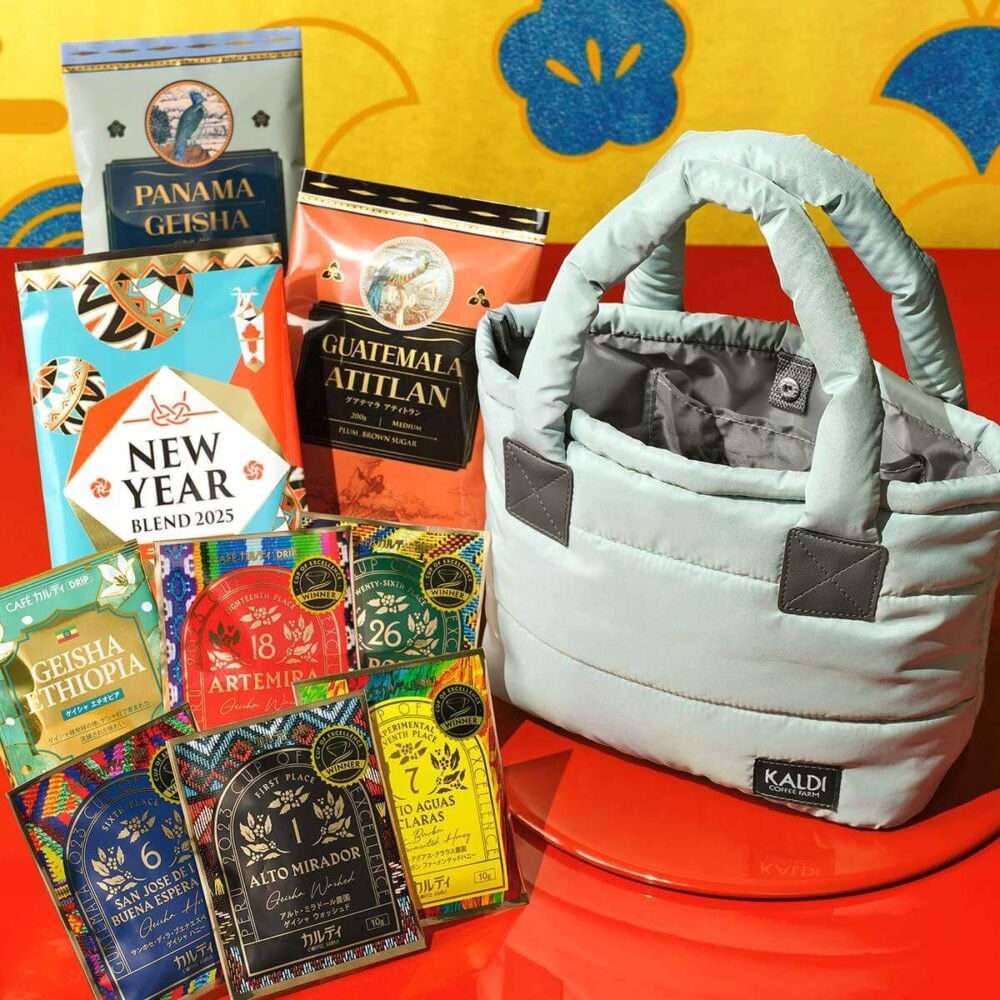 | 内容 | ・ニューイヤーブレンド2025(200g) ・パナマ ゲイシャ(200g) ・グアテマラ アティトラン(200g) ・カフェカルディドリップ ゲイシャ エチオピア(4個) ・カフェカルディドリップ ペルー2023カップ・オブ・エクセレンス 1位(1個)/ 18位(1個) ・カフェカルディドリップ グアテマラ2023カップ・オブ・エクセレンス 6位(1個) ・カフェカルディドリップ ブラジル2023カップ・オブ・エクセレンス 7位(1個) ・カフェカルディドリップ メキシコ2023カップ・オブ・エクセレンス 26位(1個) ・バッグ ⇒ サイズ(約)縦23×横25×マチ14cm 持ち手36cm |